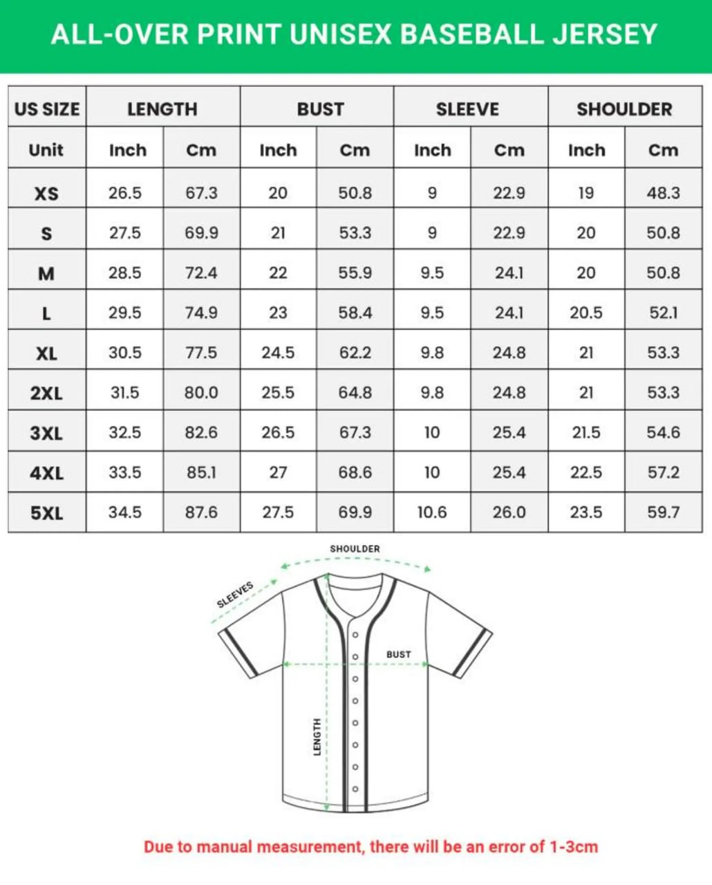 Our baseball jerseys are prepared with full Button Down Closures.
